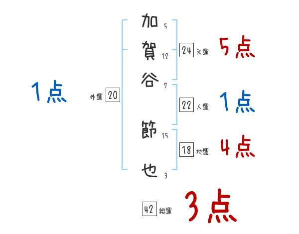 加賀谷節也さんの画数の鑑定結果