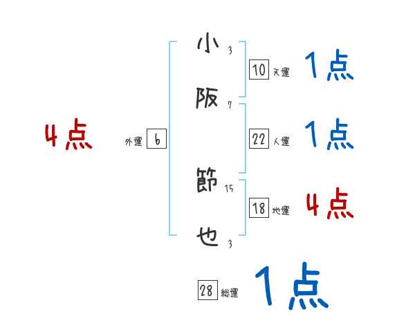 小阪節也さんの画数の鑑定結果