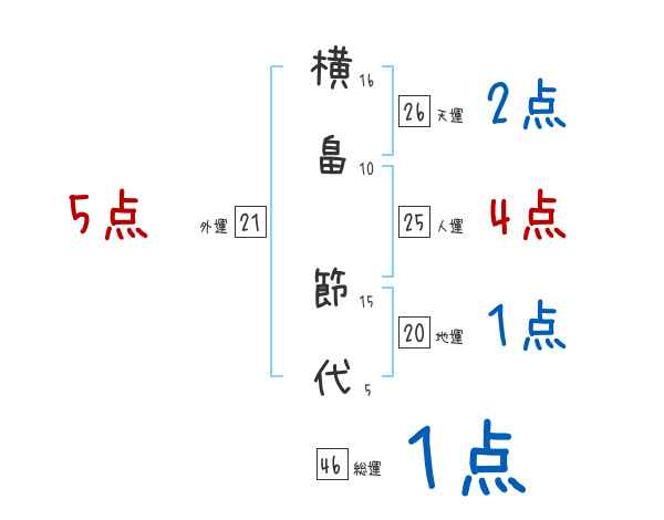 横畠節代さんの画数の鑑定結果