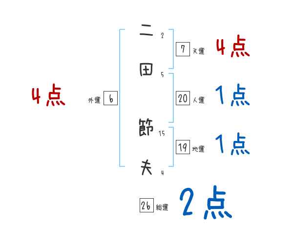 二田節夫さんの画数の鑑定結果