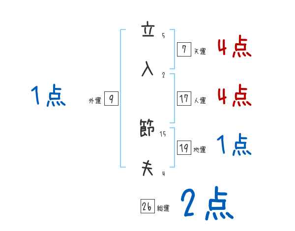 立入節夫さんの画数の鑑定結果