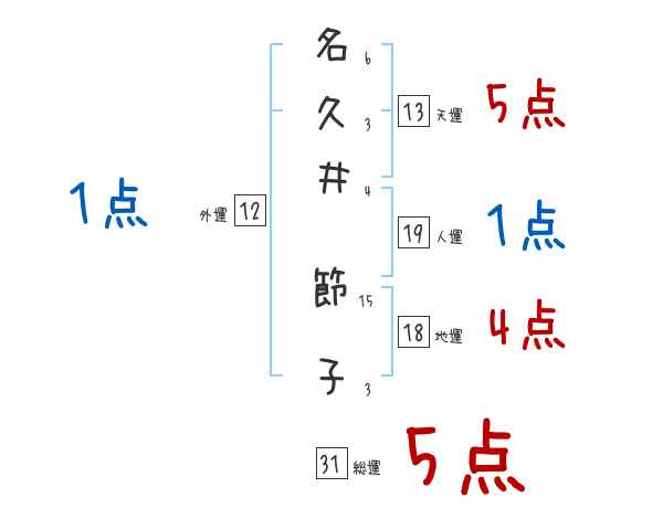総運![]() | 名久井節子さんの総運は31画の5つ星!社交性があり判断力に優れる。順風満帆な人生で円満な生活。 あなたの人生を表す1番重要な運勢です。生涯を通じて影響する総合運となり、主に50歳以降の晩年期に影響を及ぼします。 |