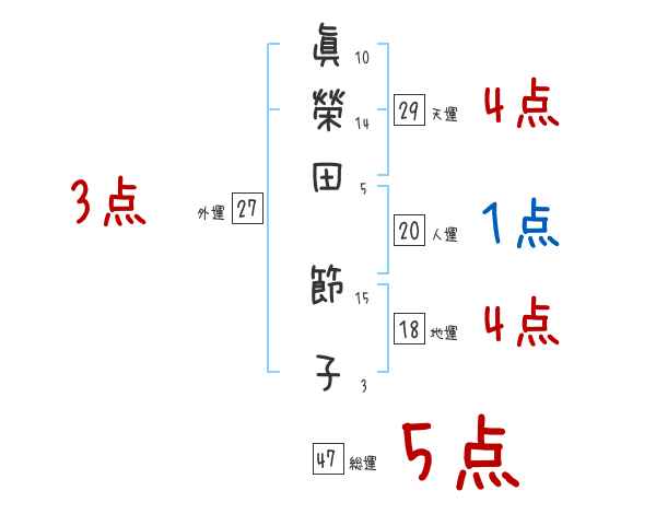 眞榮田節子さんの画数の鑑定結果