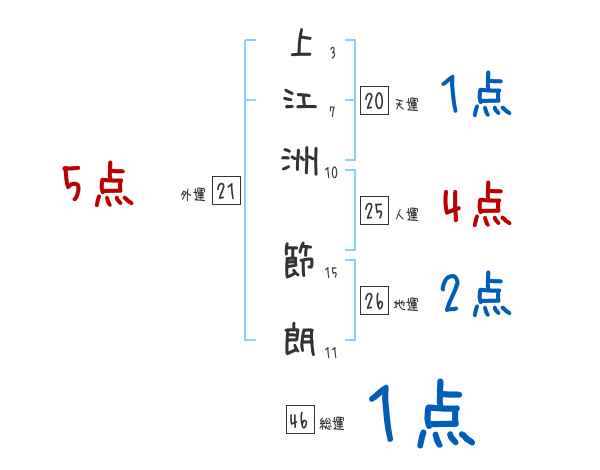 外運![]() | 上江洲節朗さんの外運は21画の5つ星!統率力がある。独立し成功する。名誉を手に入れる。 生活面を象徴する運勢です。外部から受ける影響力を表し、結婚運、家庭運や職場、環境への順応性を表します。 |