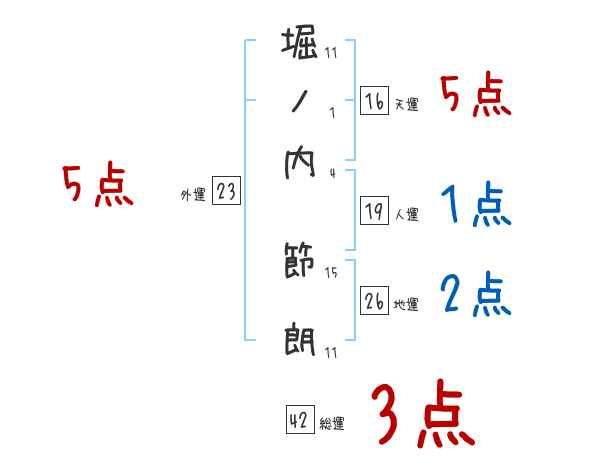 堀ノ内節朗さんの画数の鑑定結果
