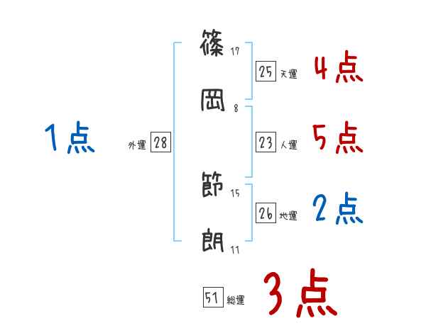 篠岡節朗さんの画数の鑑定結果