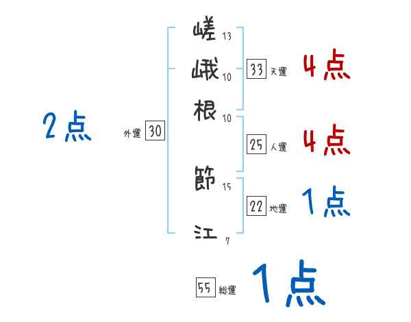 嵯峨根節江さんの画数の鑑定結果