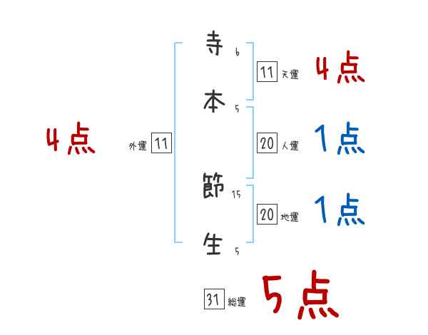 寺本節生さんの画数の鑑定結果