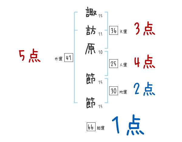諏訪原節節さんの画数の鑑定結果