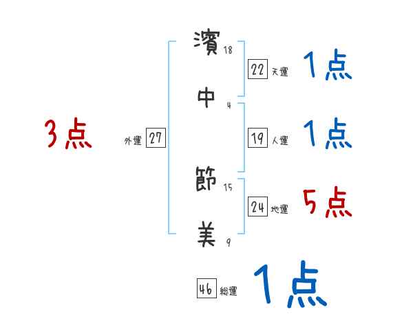 濱中節美さんの画数の鑑定結果