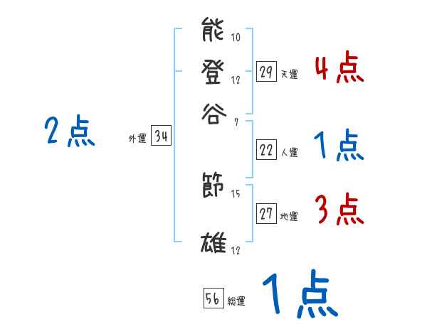能登谷節雄さんの画数の鑑定結果