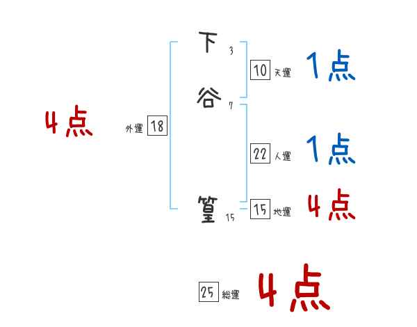 天運![]() | 下谷篁さんの天運は10画の1つ星!不安を感じやすい傾向。ストレスを抱えないように注意しましょう。 家系が持つ宿命的な運勢を表します。祖先から受け継いだ苗字ですので自分の力が及びません。家柄を象徴します。 |