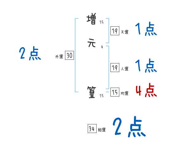 総運![]() | 増元篁さんの総運は34画の2つ星!独創性に優れるが、自尊心が強く災難に注意しましょう。 あなたの人生を表す1番重要な運勢です。生涯を通じて影響する総合運となり、主に50歳以降の晩年期に影響を及ぼします。 |