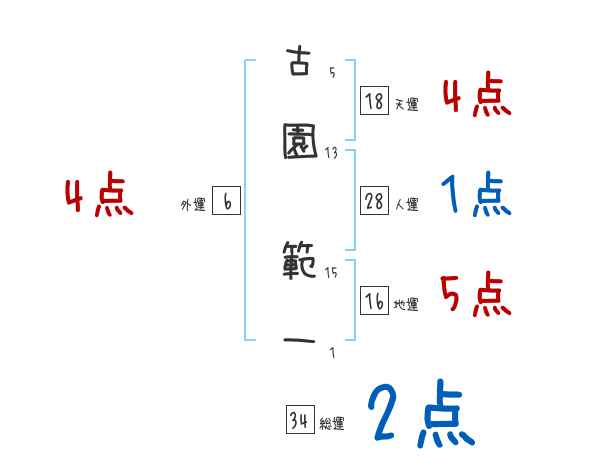 古園範一さんの画数の鑑定結果
