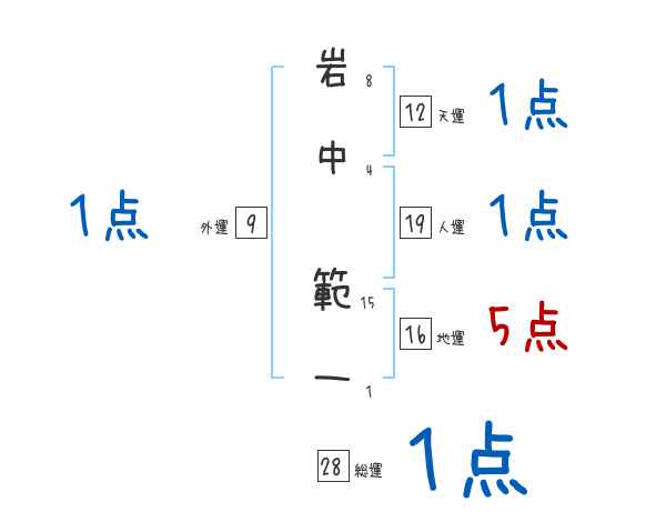 岩中範一さんの画数の鑑定結果