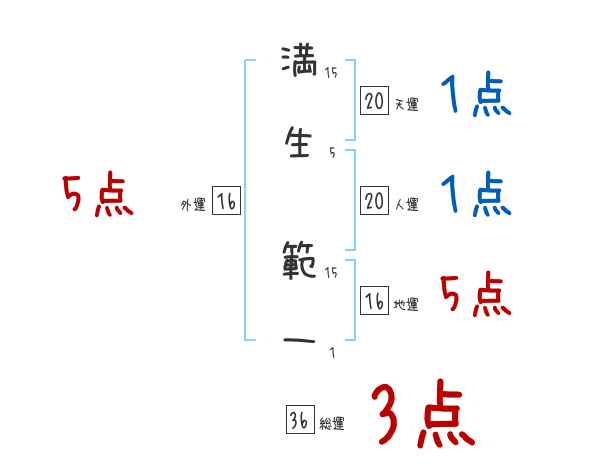 満生範一さんの画数の鑑定結果