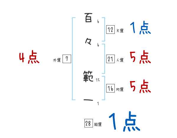 百々範一さんの画数の鑑定結果
