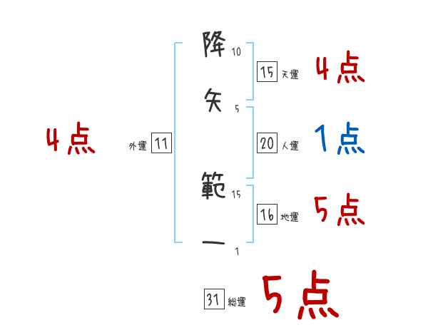 降矢範一さんの画数の鑑定結果
