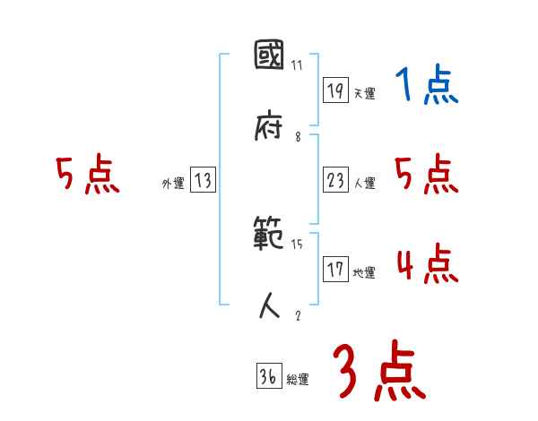 國府範人さんの画数の鑑定結果