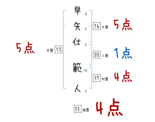 早矢仕範人さんの画数の鑑定結果