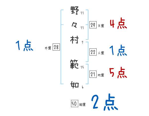 野々村範如さんの画数の鑑定結果