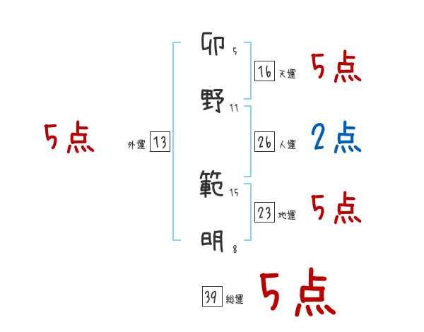 卯野範明さんの画数の鑑定結果