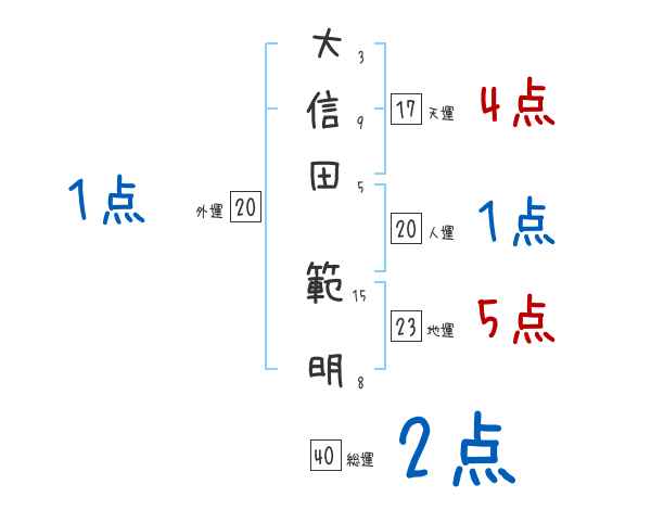 総運![]() | 大信田範明さんの総運は40画の2つ星!自信過剰で物事に固執するためトラブルに注意。 あなたの人生を表す1番重要な運勢です。生涯を通じて影響する総合運となり、主に50歳以降の晩年期に影響を及ぼします。 |