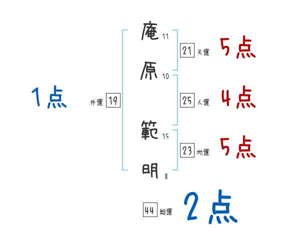 庵原範明さんの画数の鑑定結果