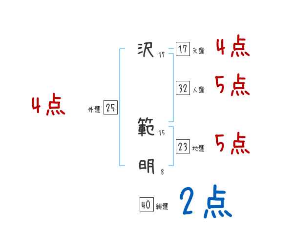 沢範明さんの画数の鑑定結果