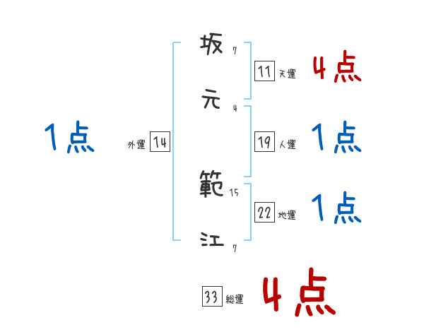 坂元範江さんの画数の鑑定結果