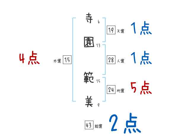寺園範美さんの画数の鑑定結果