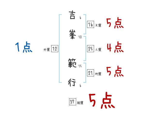 総運![]() | 吉峯範行さんの総運は37画の5つ星!努力家で順応性に優れる。現実的な考え方ができ忠実に物事をこなす。 あなたの人生を表す1番重要な運勢です。生涯を通じて影響する総合運となり、主に50歳以降の晩年期に影響を及ぼします。 |