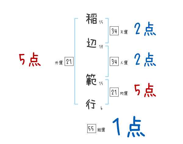 外運![]() | 稲辺範行さんの外運は21画の5つ星!統率力がある。独立し成功する。名誉を手に入れる。 生活面を象徴する運勢です。外部から受ける影響力を表し、結婚運、家庭運や職場、環境への順応性を表します。 |