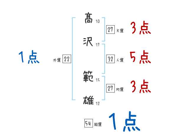 髙沢範雄さんの画数の鑑定結果