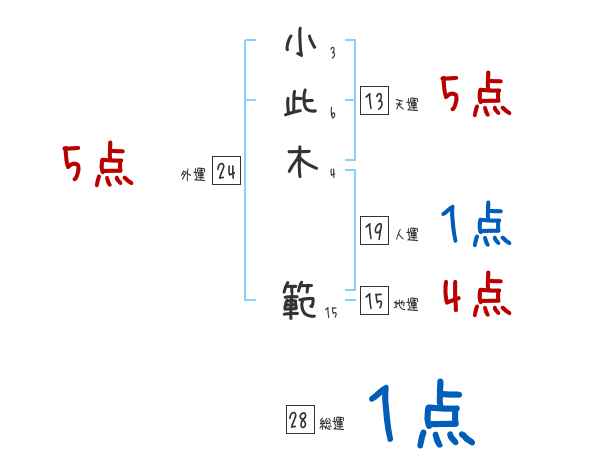 総運![]() | 小此木範さんの総運は28画の1つ星!家庭環境に注意。スポーツで活躍できる能力があるかも。 あなたの人生を表す1番重要な運勢です。生涯を通じて影響する総合運となり、主に50歳以降の晩年期に影響を及ぼします。 |