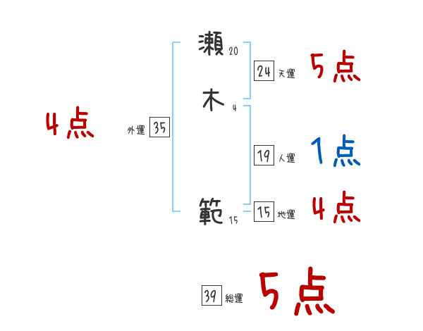 瀬木範さんの画数の鑑定結果