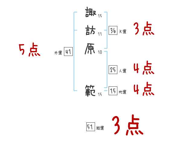 諏訪原範さんの画数の鑑定結果