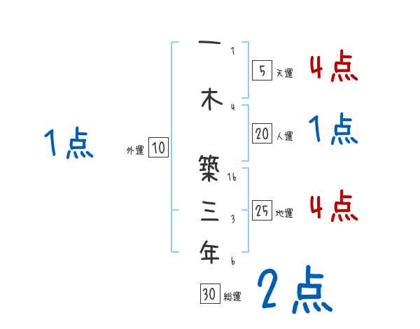 外運![]() | 一木築三年さんの外運は10画の1つ星!不安を感じやすい傾向。ストレスを抱えないように注意しましょう。 生活面を象徴する運勢です。外部から受ける影響力を表し、結婚運、家庭運や職場、環境への順応性を表します。 |