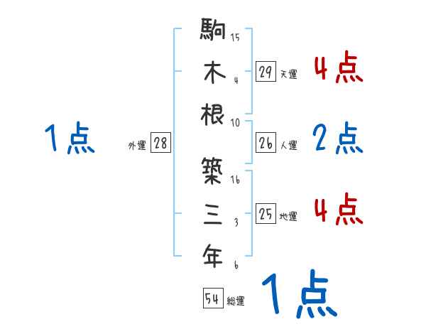 外運![]() | 駒木根築三年さんの外運は28画の1つ星!家庭環境に注意。スポーツで活躍できる能力があるかも。 生活面を象徴する運勢です。外部から受ける影響力を表し、結婚運、家庭運や職場、環境への順応性を表します。 |