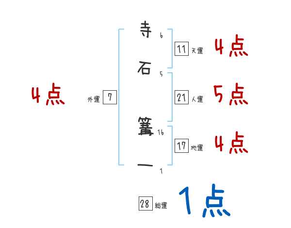 寺石篝一さんの画数の鑑定結果