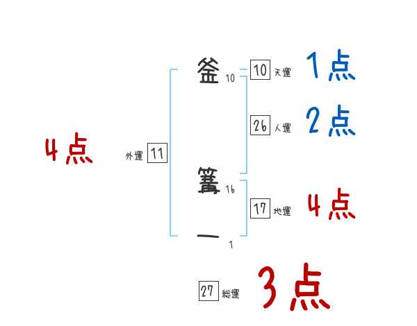 釜篝一さんの画数の鑑定結果