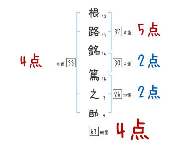 根路銘篤之助さんの画数の鑑定結果