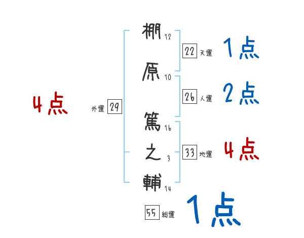 天運![]() | 棚原篤之輔さんの天運は22画の1つ星!努力することが苦手ないっぽう手先が器用。芸術性にも優れる。 家系が持つ宿命的な運勢を表します。祖先から受け継いだ苗字ですので自分の力が及びません。家柄を象徴します。 |
