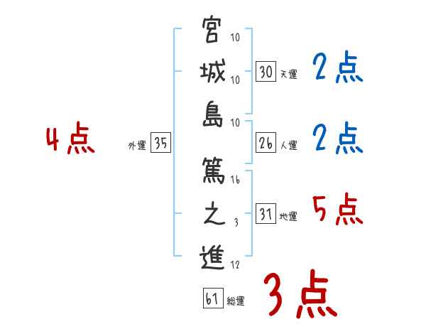 宮城島篤之進さんの画数の鑑定結果