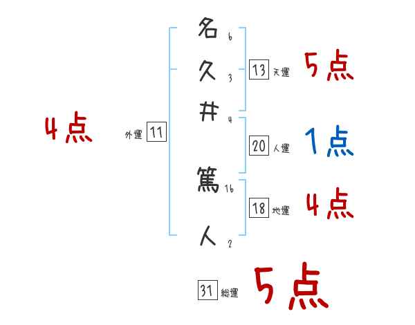 名久井篤人さんの画数の鑑定結果
