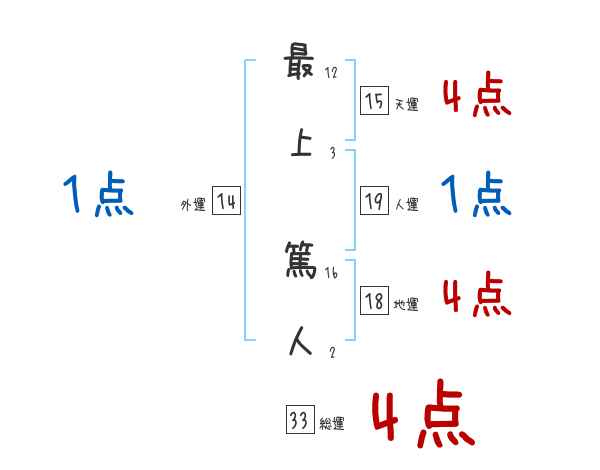 総運![]() | 最上篤人さんの総運は33画の4つ星!権力志向でプライドが高い。勇気があり運を切り開き成功する。 あなたの人生を表す1番重要な運勢です。生涯を通じて影響する総合運となり、主に50歳以降の晩年期に影響を及ぼします。 |