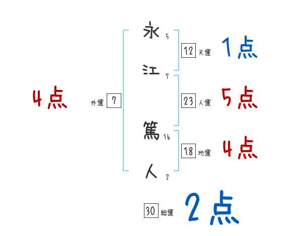 永江篤人さんの画数の鑑定結果