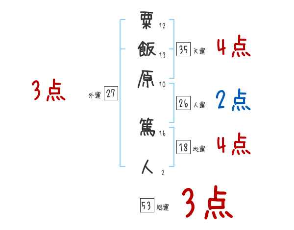 粟飯原篤人さんの画数の鑑定結果