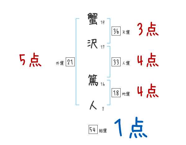 蟹沢篤人さんの画数の鑑定結果