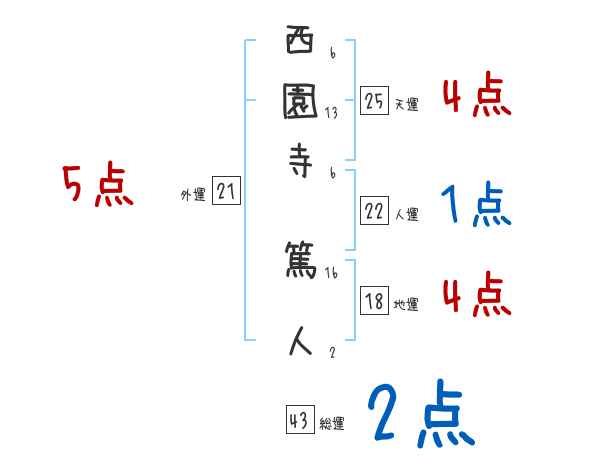 西園寺篤人さんの画数の鑑定結果